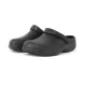 Chef’s clogs with a non-slip outer sole for extra grip on tiled floors. Inner sole with raised bumps for slip resistance and comfort. Slip-on style with moulded heel. Optional hinged strap to secure around the heel. Lightweight rubber, waterproof by nature. Available in five dual sizes. Wide fit.