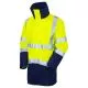 "En 471 Class 3 Highway Anorak Fabric: PU coated Polyester, EN343 3,1 Length: 93cm Sizes: S - 3XL Features: Warm quilt lining, Lycra storm cuff, Velcro cuff adjuster, Shaped high collar concealed 3-piece hood, Shaped drop back, two way main zip, Full length Velcro fastened, double storm flap, internal nelson pocket, internal patch pockets x 3, large velcro fastened front pockets"